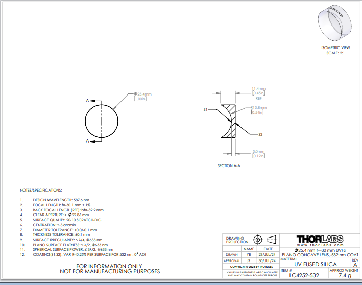 Thorlabs索雷博 LC4252-532 平凹透镜