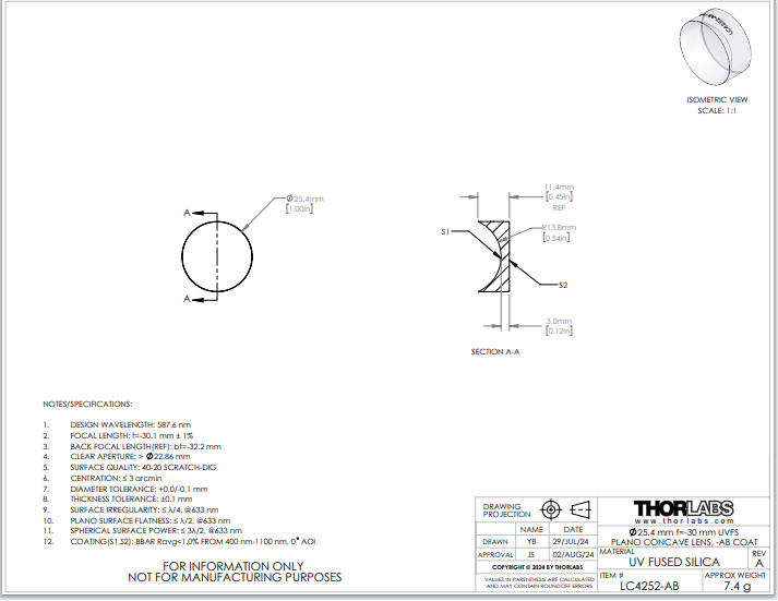Thorlabs索雷博 LC4252-AB 平凹透镜