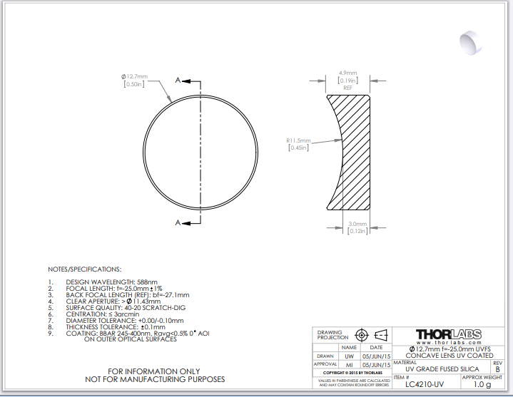 Thorlabs索雷博     LC4210-UV   平凹透镜