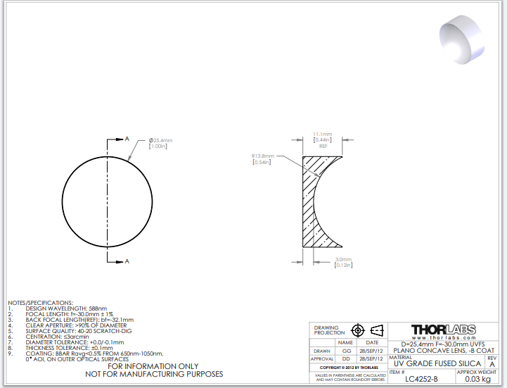 Thorlabs索雷博     LC4252-B   平凹透镜