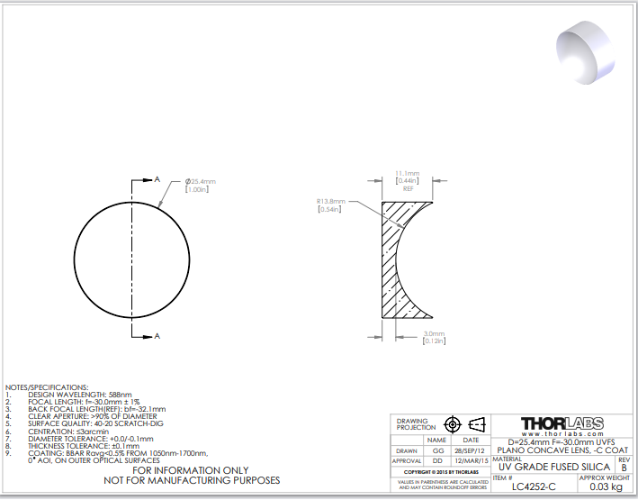 Thorlabs索雷博 LC4252-C 平凹透镜