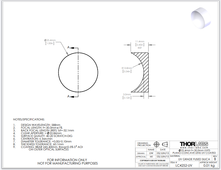 Thorlabs索雷博     LC4252-UV   平凹透镜