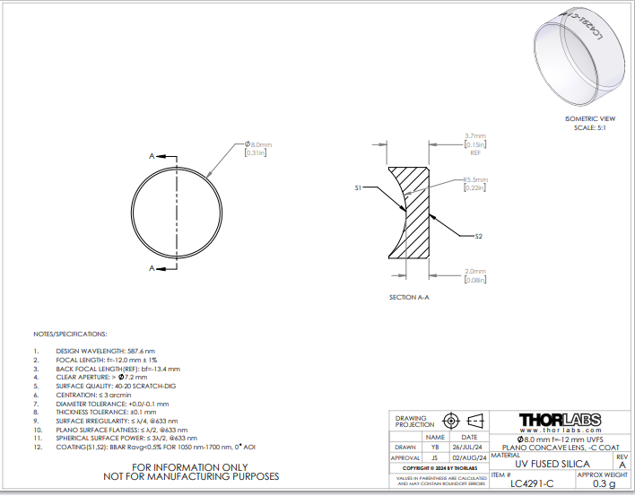 Thorlabs索雷博 LC4291-C 平凹透镜