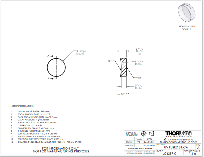 Thorlabs索雷博     LC4357-C   平凹透镜
