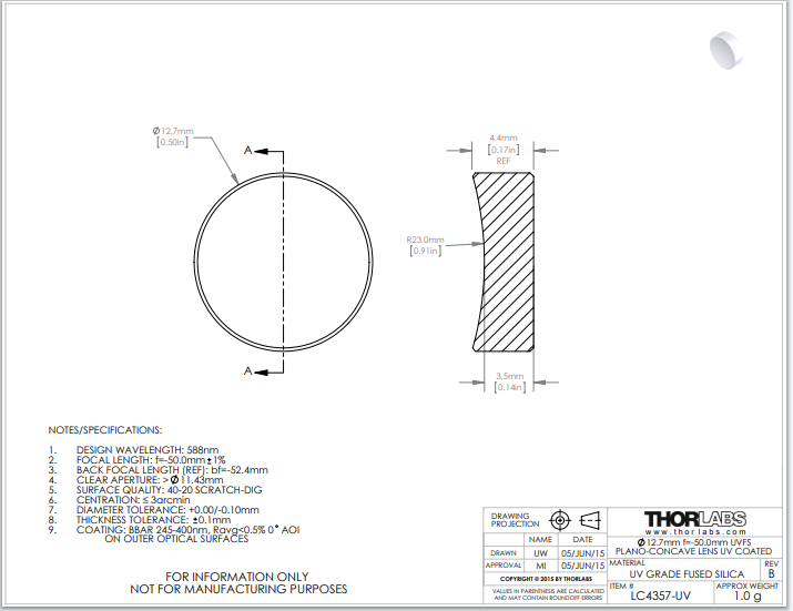 Thorlabs索雷博     LC4357-UV   平凹透镜