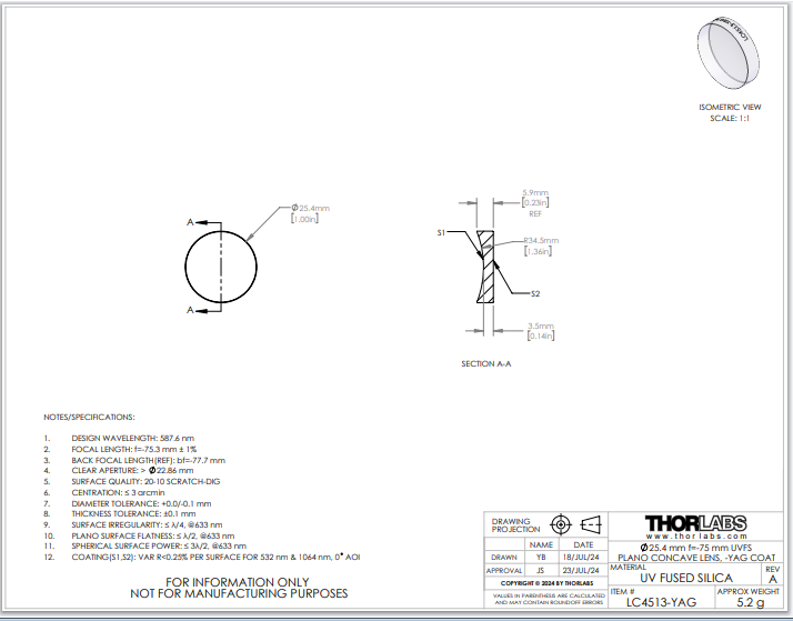 Thorlabs索雷博 LC4513-YAG 平凹透镜
