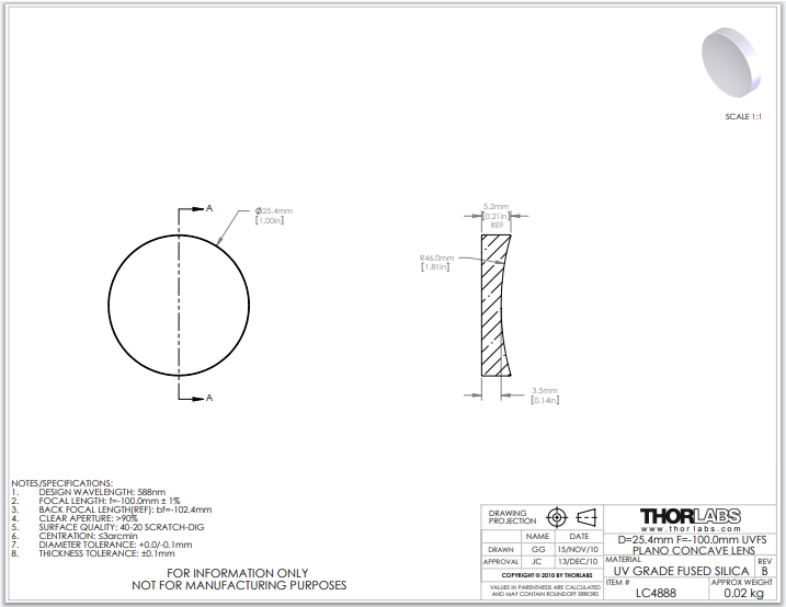 Thorlabs索雷博     LC4888   平凹透镜