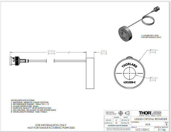 Thorlabs索雷博 LCC1223-C - 全波液晶延迟器