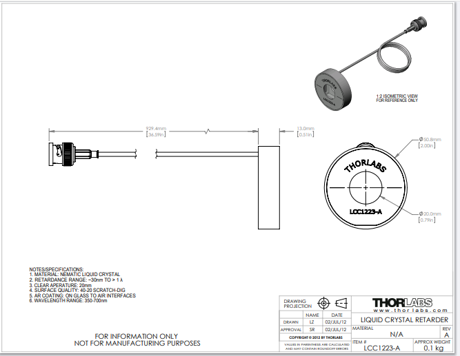 Thorlabs索雷博 LCC1223-A - 全波液晶延迟器