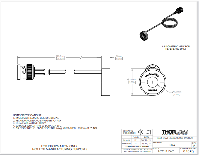 Thorlabs索雷博 LCC1115-C - 多波液晶延迟器