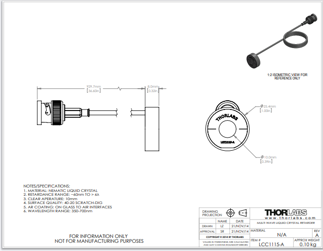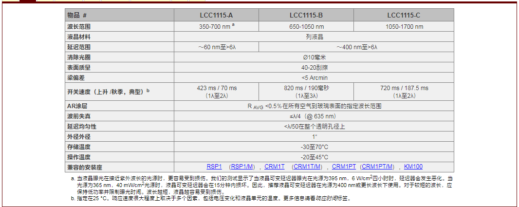 Thorlabs索雷博     LCC1115-A - 多波液晶延迟器