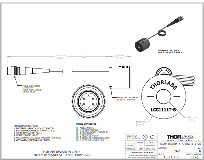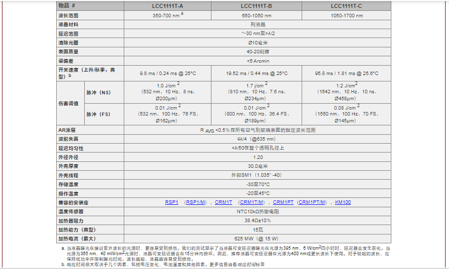 Thorlabs索雷博 LCC1111T-B - 温度稳定液晶延迟器