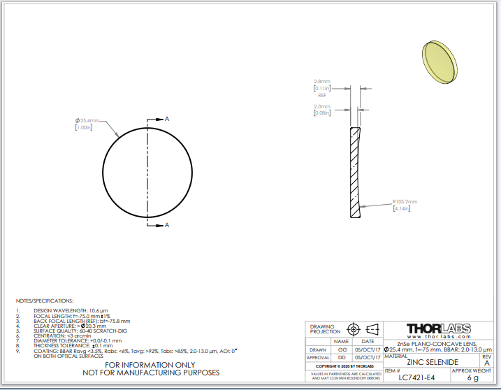Thorlabs索雷博     LC7421-E4   平凹透镜