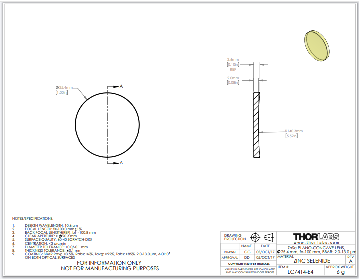 Thorlabs索雷博     LC7414-E4   平凹透镜