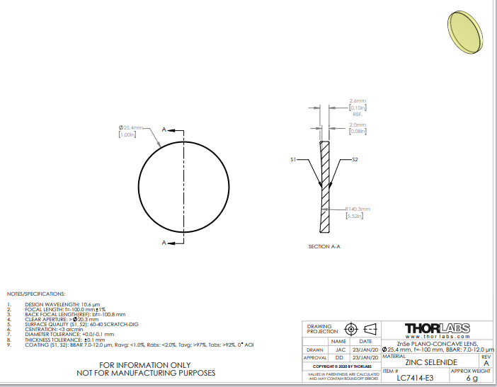 Thorlabs索雷博 LC7414-E3 平凹透镜