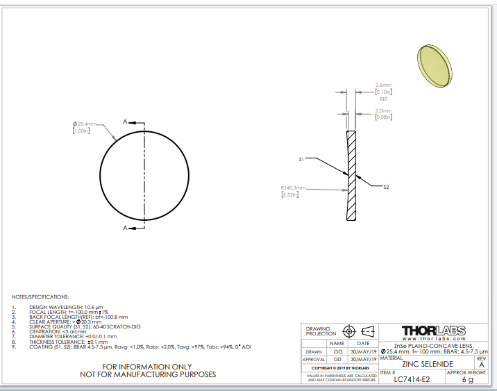 Thorlabs索雷博 LC7414-E2 平凹透镜