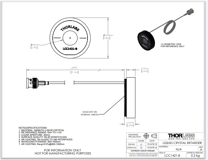 Thorlabs索雷博 LCC1421-B - 半波液晶延迟器