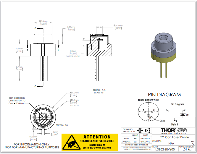 Thorlabs索雷博 LD852-SEV600 - 单频激光二极管