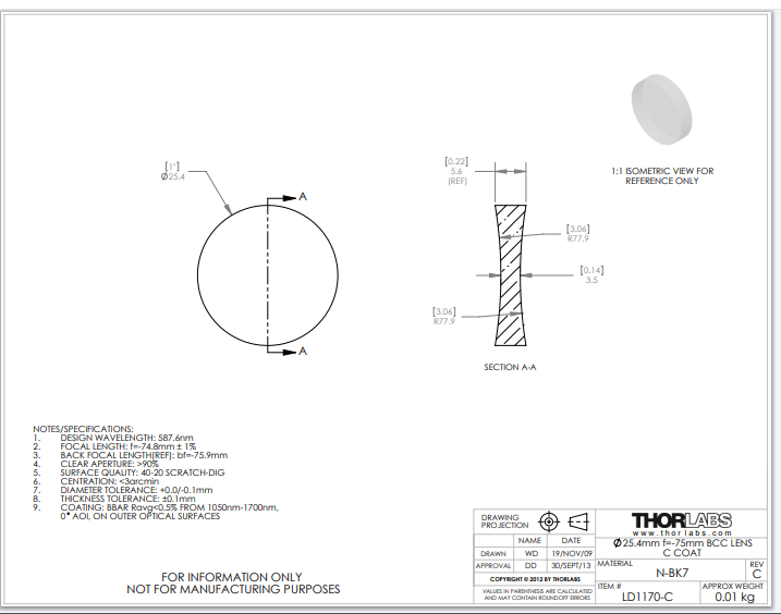 Thorlabs索雷博 LD1170-C 双凹透镜
