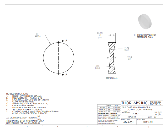 Thorlabs索雷博     LD1464-B   双凹透镜