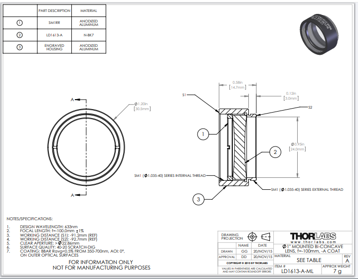 Thorlabs索雷博 LD1613-A-ML 双凹透镜