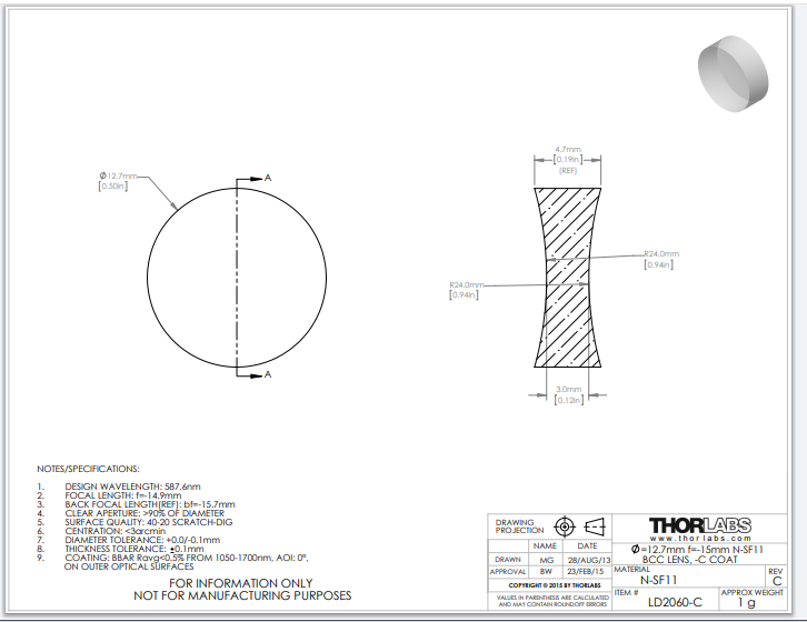 Thorlabs索雷博 LD2060-C 双凹透镜