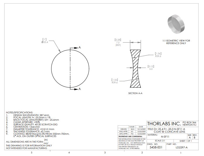 Thorlabs索雷博     LD2297-A   双凹透镜