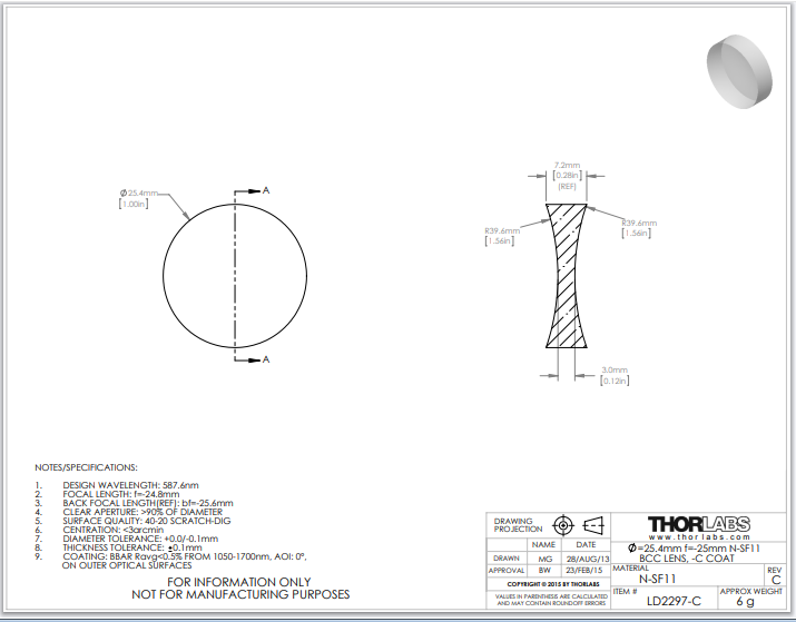 Thorlabs索雷博 LD2297-C 双凹透镜