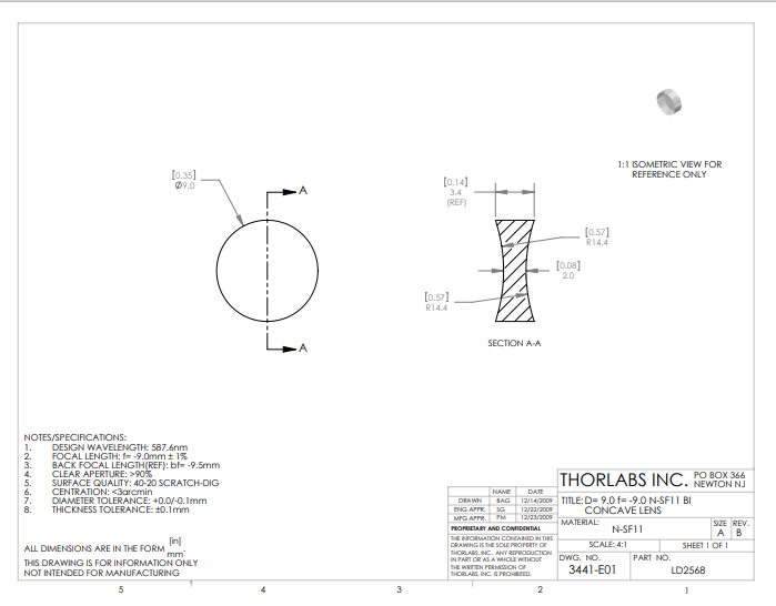 Thorlabs索雷博 LD2568 双凹透镜