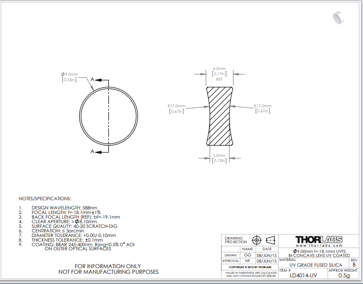 Thorlabs索雷博 LD4014-UV 双凹透镜
