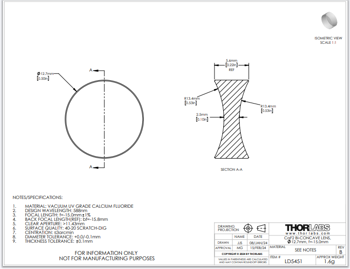 Thorlabs索雷博 LD5451 双凹透镜