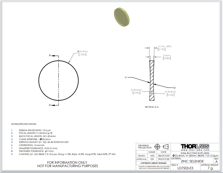 Thorlabs索雷博 LD7503-E3 双凹透镜