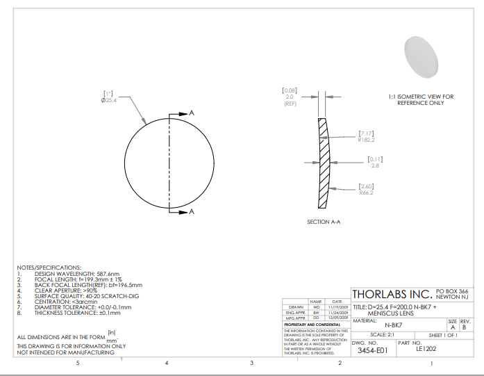 Thorlabs索雷博     LE1202   正弯月透镜