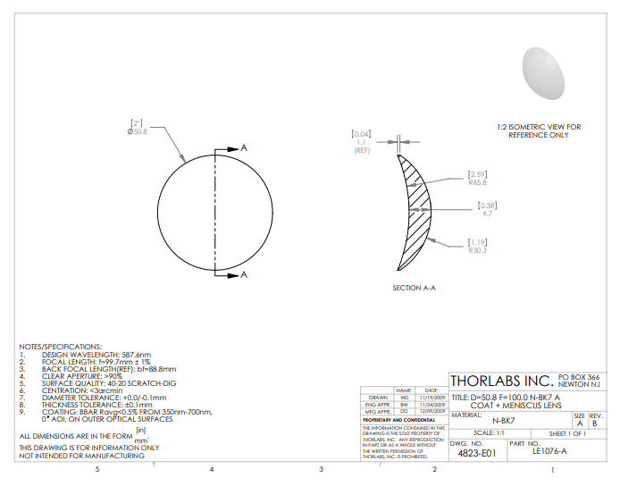 Thorlabs索雷博     LE1076-A   正弯月透镜