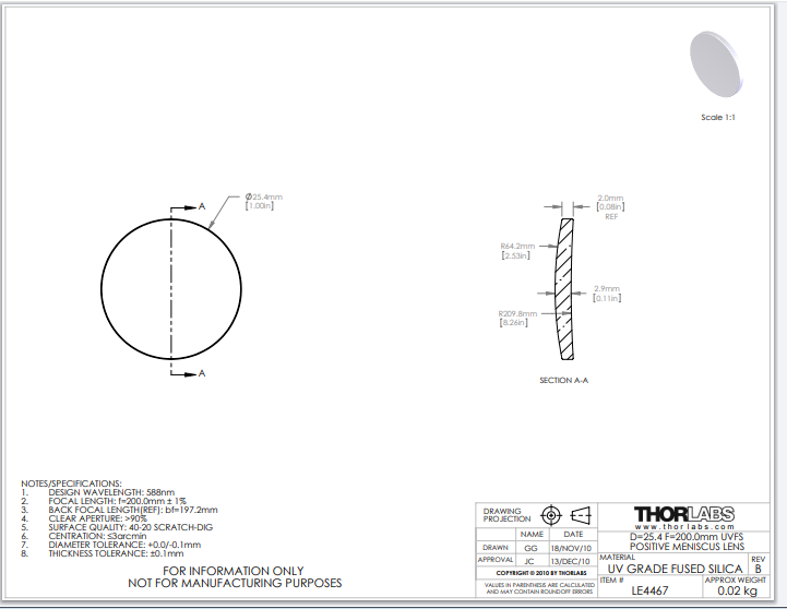 Thorlabs索雷博 LE4467 正弯月透镜
