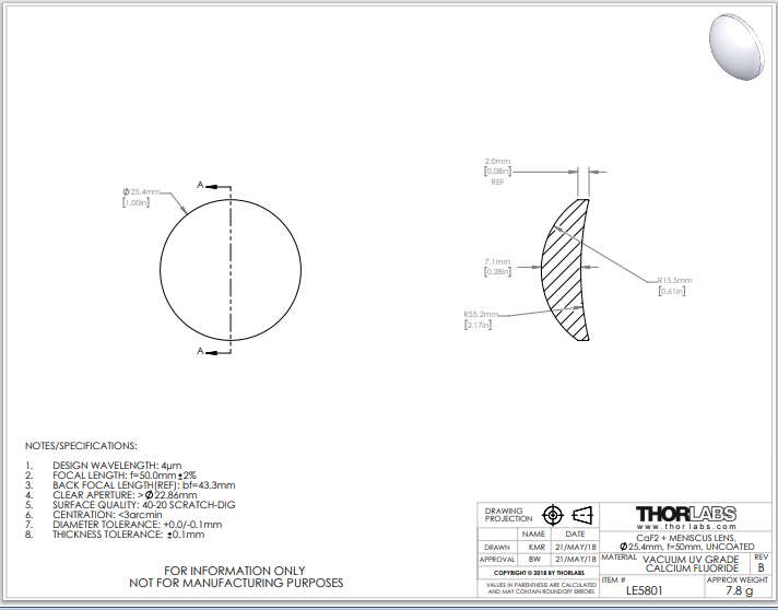 Thorlabs索雷博     LE5801   正弯月透镜