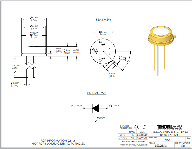 Thorlabs索雷博 LED255W - 255 nm LED