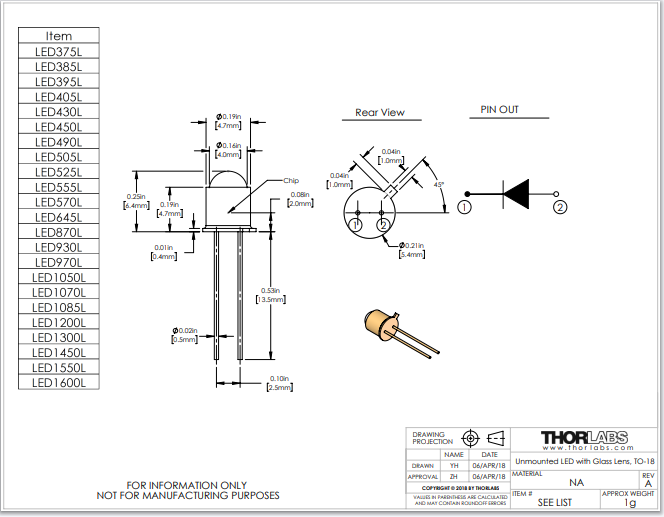 Thorlabs索雷博 LED430L - 430 nm LED