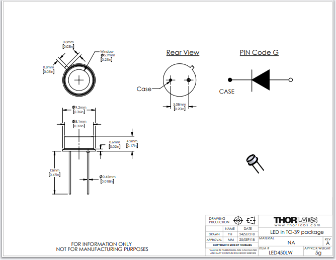 Thorlabs索雷博 LED450LW - 450 nm LED