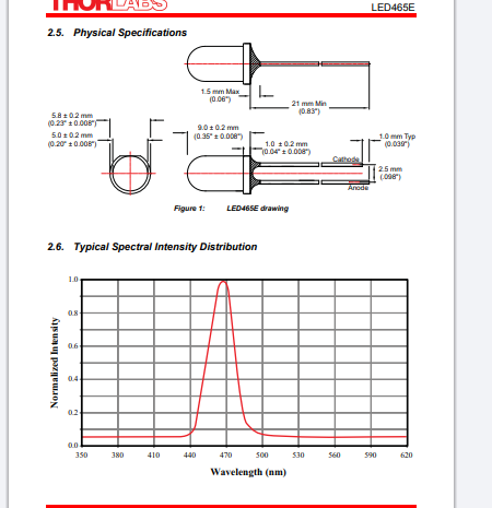 Thorlabs索雷博 LED465E - 465 nm LED