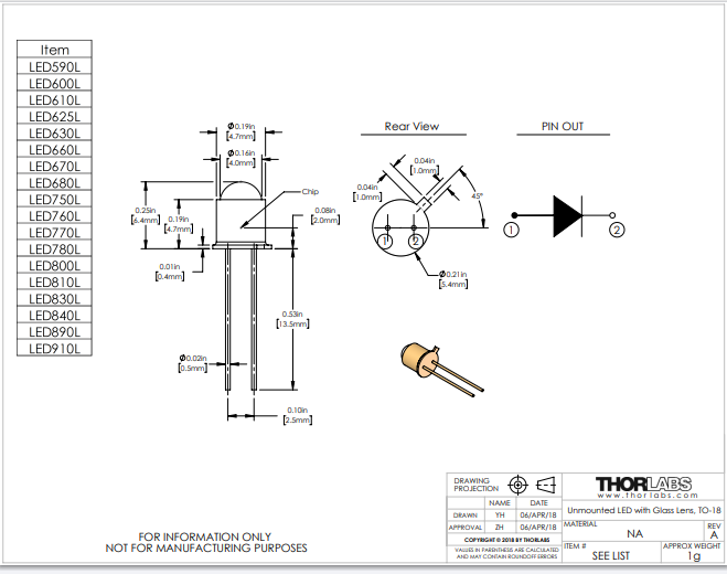 Thorlabs索雷博 LED770L - 770 nm LED