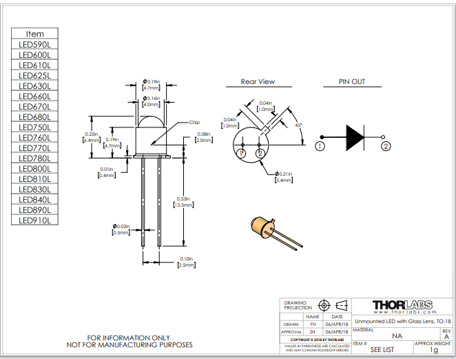 Thorlabs索雷博 LED780L - 780 nm LED