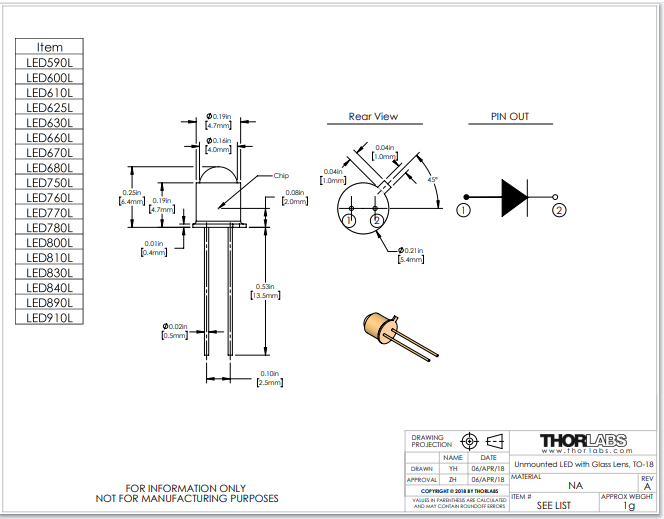 Thorlabs索雷博 LED830L - 830 nm LED