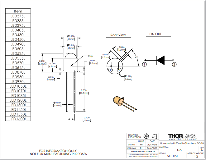 Thorlabs索雷博 LED1085L - 1085 nm LED