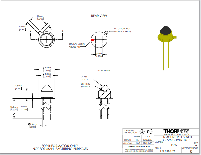 Thorlabs索雷博 LED2800W - 2800 nm LED