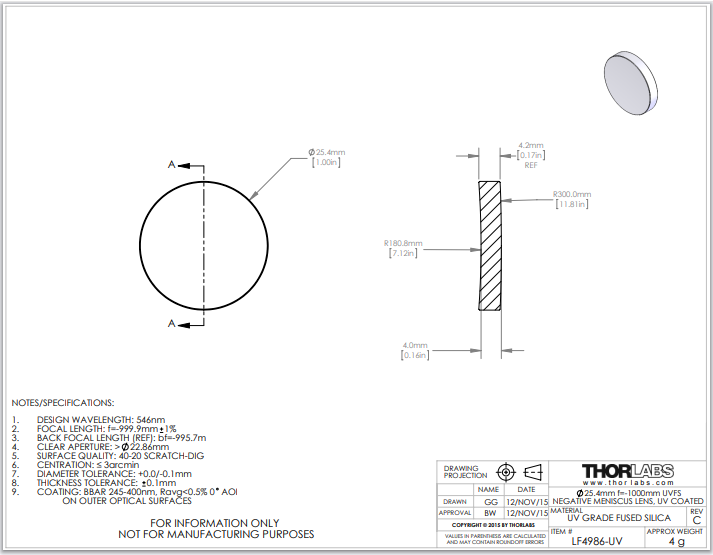 Thorlabs索雷博 LF4986-UV 负弯月透镜