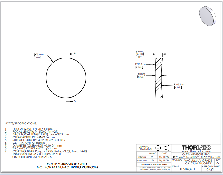 Thorlabs索雷博 LF5048-E1 负弯月透镜