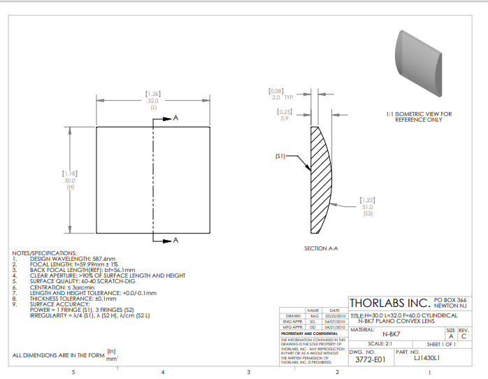 Thorlabs索雷博 LJ1430L1 平凸柱面透镜