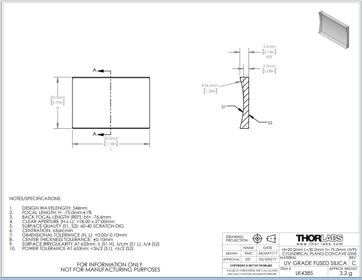 Thorlabs索雷博     LK4385   平凹柱面透镜