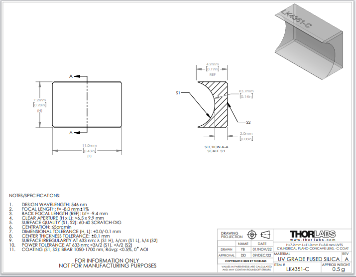 Thorlabs索雷博 LK4351-C 平凹柱面透镜